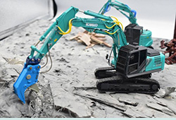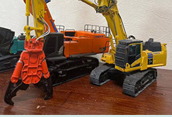 現場で働く私たちにとって、仕事道具である重機や現場の風景に関心を持って作品にしてくれる活動は大変嬉しく、ここにギャラリーコンテンツとしてご紹介させていただきました。 卓上に再現された解体重機の世界をぜひお楽しみください。
