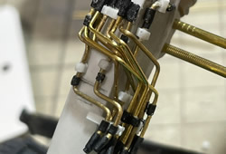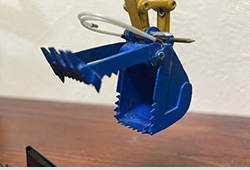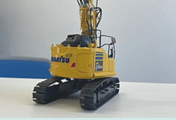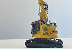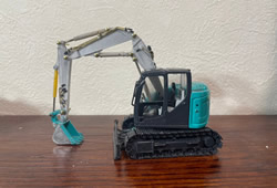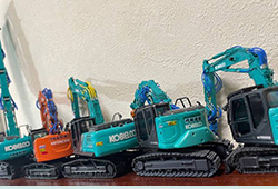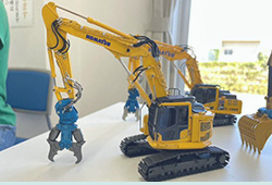 これらの模型は、すべて当社へ見学に訪れる学生(川村海翔さん:掲載当時高校生)が作成したもので、市販の重機モデルをベースにカスタマイズした作品。アタッチメントなどは実物を観察して自作、重機のディテールや汚しなども忠実に再現し、丁寧に仕上げています。その完成度の高さは、重機メーカーからも賞賛されたほどです。