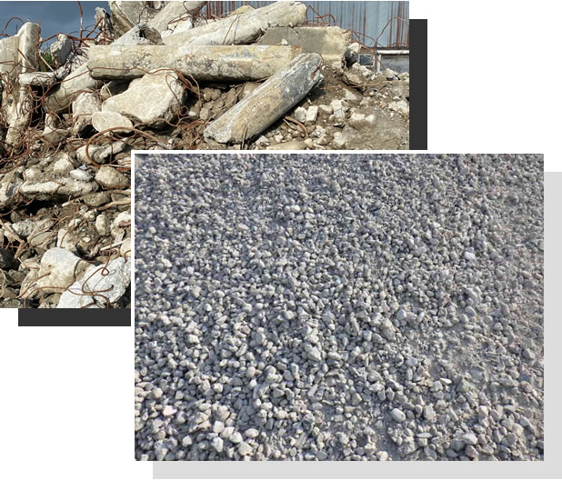 当社では、建物の解体現場から排出された、コンクリートがれき類(コンクリートがら)をリサイクルし、RCコンクリート(規格:RC40)として販売を行っています。